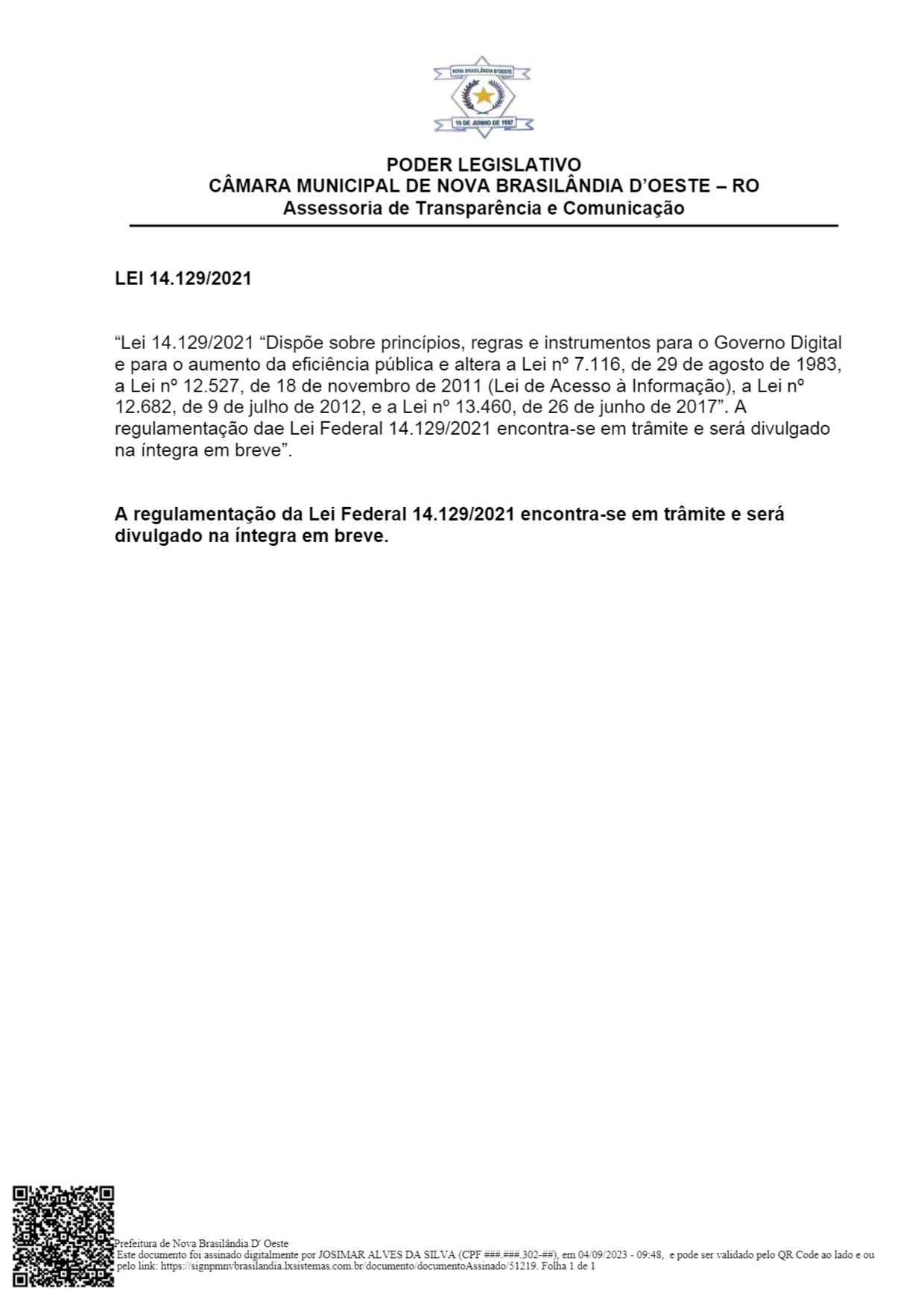 Câmara Municipal de Nova Brasilândia D'Oeste - RO