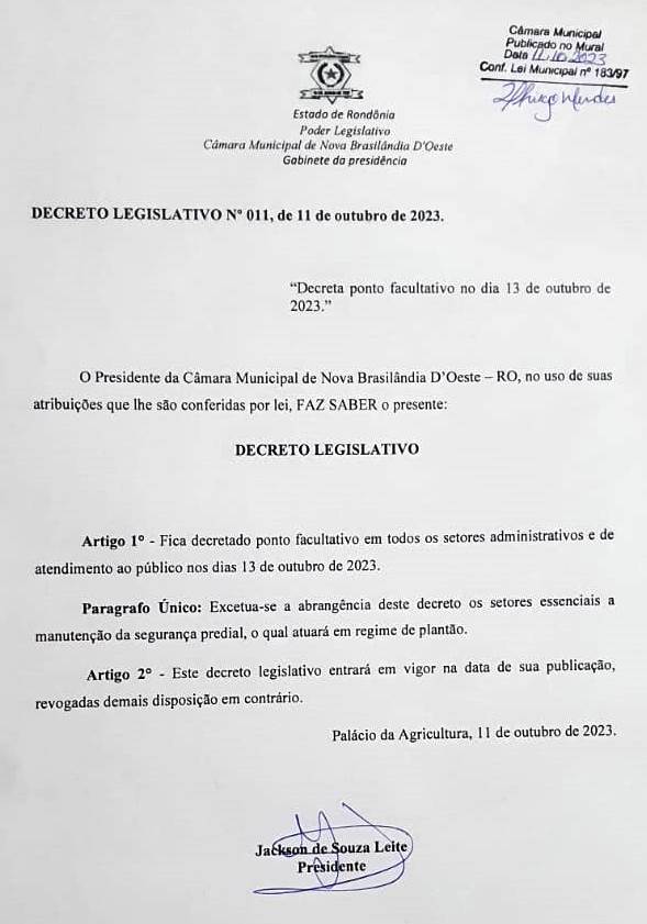 Decreto Legislativo 011/2023 - Ponto Facultativo